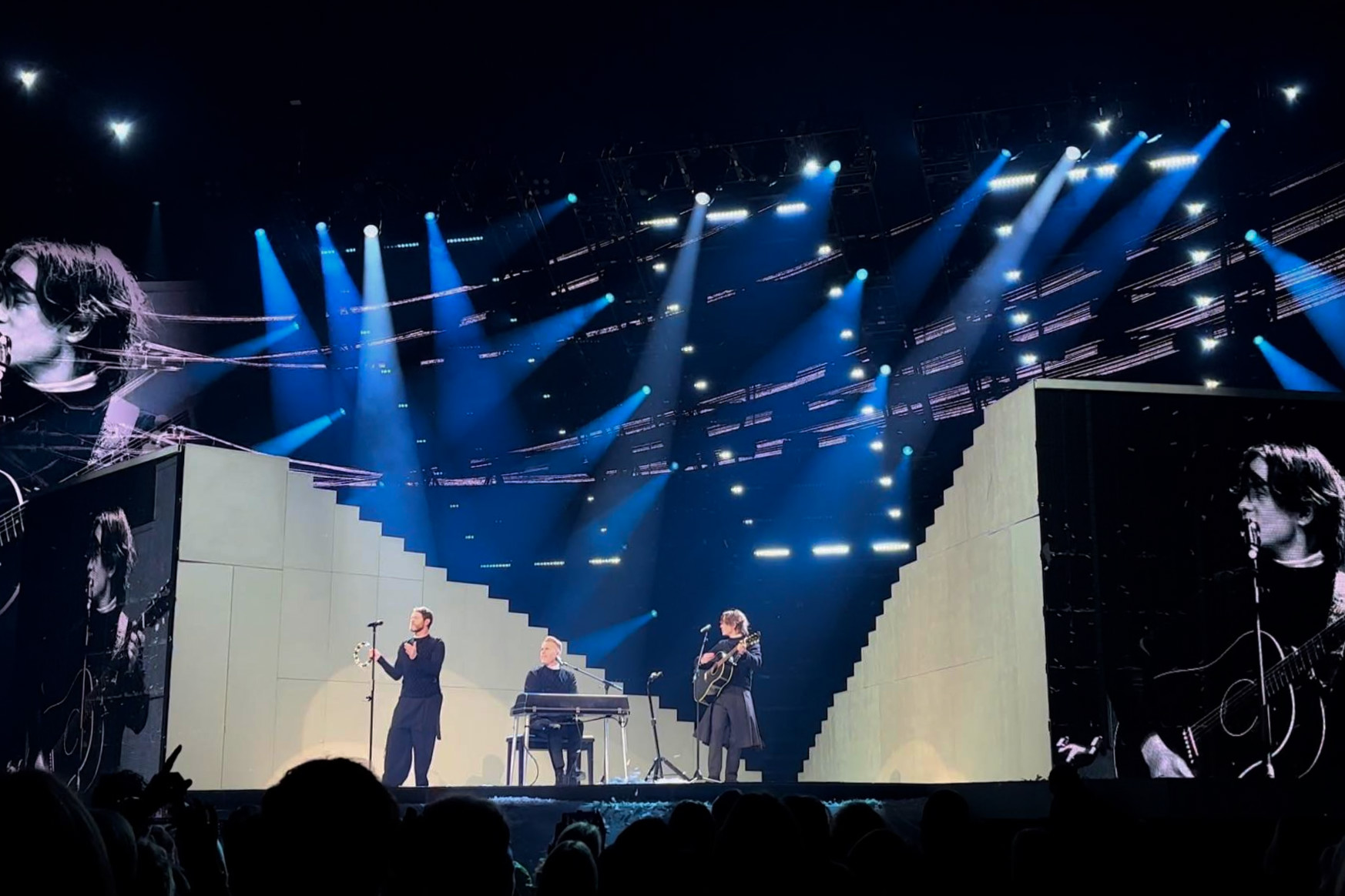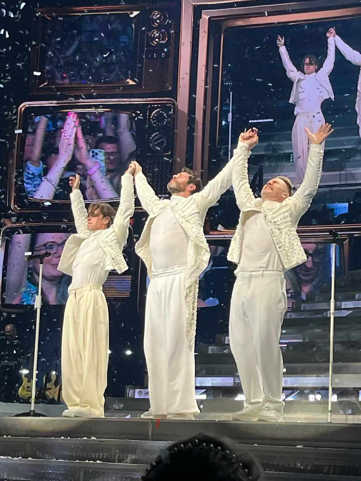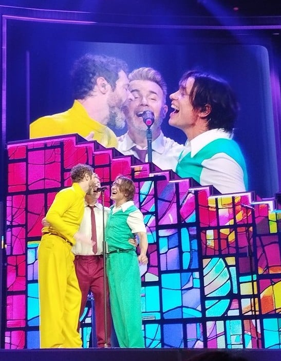 C’est mon sixième concert de Take that, et c’est de loin le plus original ! Oubliez les danseurs et les grosses mises en scène et laissez place au minimalisme ! Le show est divisé en plusieurs parties, il commence avec une série de chansons. Durant cette partie on peut sentir venir la suite, elle est pleine d’auto dérision et la mise en scène suit plutôt bien ! Sans en dire trop ils rappellent notamment durant une chanson qu’ils sont trop vieux pour ça