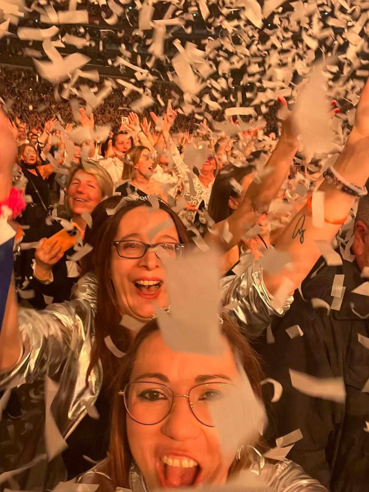 J’y suis allée à Dublin avec mon fils et sa petite amie. Autour de nous il y avait des familles aussi, des adolescents époustouflés de ce qui leur arrivait !! Le show était spectaculaire, pas de danseurs mais une mise en scène fun et des projections sur des écrans immenses, des jeux de lumières incroyables avec des projections en 3D que l’on pouvait regarder avec des lunettes. Confettis, fontaines, jets de feu, tout y était. Des chansons nouvelles et anciennes, focus sur les musiciens et la foule. Ils se sont donnés à fond.