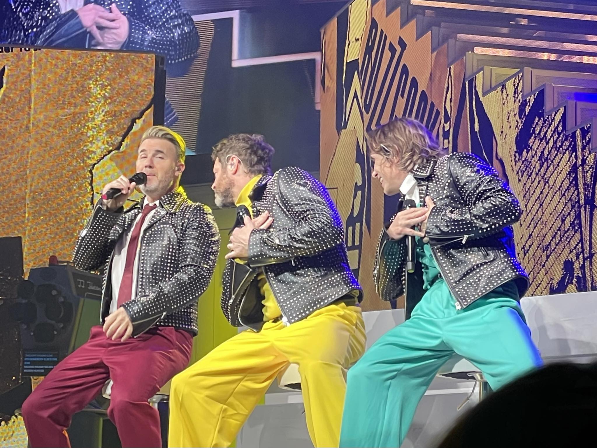 J’ai eu la chance d’assister à 3 concerts: 1 soir à Dublin en fosse au 2e rang et 2 soirs en gradins à Birmingham dans 2 blocks différents. Tout d’abord un concert de ⫩ c’est avant tout une grande aventure avec un grand A. Il faut préparer le voyage qui me pousse à dépasser mes limites à chaque fois en me sortant de ma zone de confort. Et surtout de joyeux moments partagés avec “les” copines!!! Car il faut bien le reconnaître, un concert de ⫩ n’est pas un concert de ⫩ si on ne le vit pas avec les bonnes personnes? Celles avec qui on peut partager cette ferveur et cette communion qui règne au sein de la salle de spectacle. Mon 1er concert de cette tournée s’est donc fait à Dublin en fosse au 2e rang. Donc très près de la grande scène avec bien sûr mes partners in crime. La salle étant petite, il n’y avait pas de petite scène et la setlist était un peu différente de celle que j’attendais. Avant le concert il a eu des petites vidéos humoristique du groupe. C’était une vraie surprise. J’ai beaucoup aimé retrouver Olly Murs en 1e partie. Il a littéralement mis le feu à la salle. Je n’avais regardé que quelques photos et la setlist des concerts précédents donc je connaissais les costumes mais rien concernant la mise en scène. J’ai apprécié chacune des chansons et j’ai pu comprendre leur enchaînement. Il y avait une vraie logique et une histoire que le groupe nous racontait. Chacun a été mis en lumière individuellement à un moment donné. Les costumes étaient magnifiques. Par contre en étant au plus près de la scène les décors m’ont échappés… Comme toujours le public a été à fond et j’ai pu ressentir ce sentiment d’appartenance à la communauté ⫩ Bref ce 1er concert était au top. Seule ombre au tableau la proximité de la scène qui m’a un peu desservie. En effet je gardais un peu d’espace devant moi pour pouvoir respirer. Malheureusement mes voisines avaient repéré ce petit espace et avaient tendance à vouloir me passer devant et me poussaient pas mal…. Bref j’ai réussi à conserver mon espace vital et à faire « amie-amie » avec ma voisine un peu trop envahissante. Nous étions un bon petit groupe de copines et ça c’est l’un des principaux atouts. Nous avons aussi profité d’un magnifique séjour en Irlande. En effet chaque concert nous permet de nous retrouver et de vivre quelques jours où nous jouons les touristes et découvrons un peu plus les villes et environs où se tiennent les événements. Les 2e et 3e concerts ont eu lieux à Birmingham. Ville où je suis déjà allée avec mes Partners in crime. C’était encore une occasion de nous retrouver au cœur d’une famille formidable pour un séjour riche en émotions et de profiter de la beauté de cette région. Cette fois nous étions en gradins et avons pu avoir une vue d’ensemble du spectacle. Là j’ai pu profiter de toute la mise en scène et des décors. J’avoue avoir eu les poils lors de l’ouverture du concert et les larmes aux yeux. C’était juste magnifique et j’ai ressenti cette sensation inexplicable que le trio nous procure. J’ai partagé cette expérience avec les personnes qu’il fallait. Le temps a filé bien trop vite… Mark a été fidèle à lui-même (un clown qui partage avec son public ses pitreries, son enthousiasme et sa joie d’être là), Gary tout autant. J’ai beaucoup aimé la place qui a été donnée à Howard (un vrai plaisir de le voir interpréter ses propres titres. Il est touchant et sa voix envoûtante) Bref un concert de ⫩ c’est un tout. Une passion qui va bien au delà de ce que l’on peut penser. Elle nous permet de voyager, de rencontrer de nouvelles personnes, de partager des tranches de vies et de vivre des émotions intenses. Dommage que l’aventure se termine pour moi cette année… J’en garde de très belles photos et vidéos, des souvenirs intenses et je dis: « Vivement la prochaine tournée »!!!!